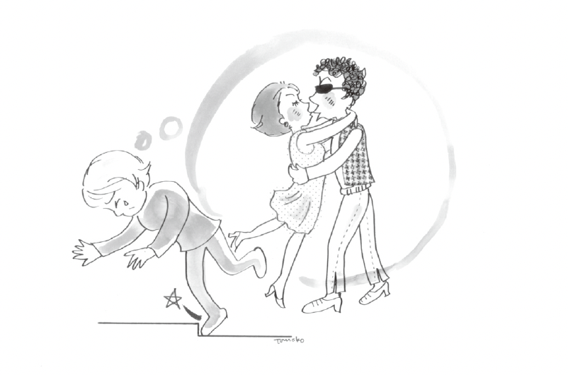 イラスト;『あの人も転んだ この人も転んだ 転倒噺と予防川柳』pp103~104、武藤芳照著、日本転倒予防学会監修、三恵社、2021年刊より(イラスト:久保谷智子)